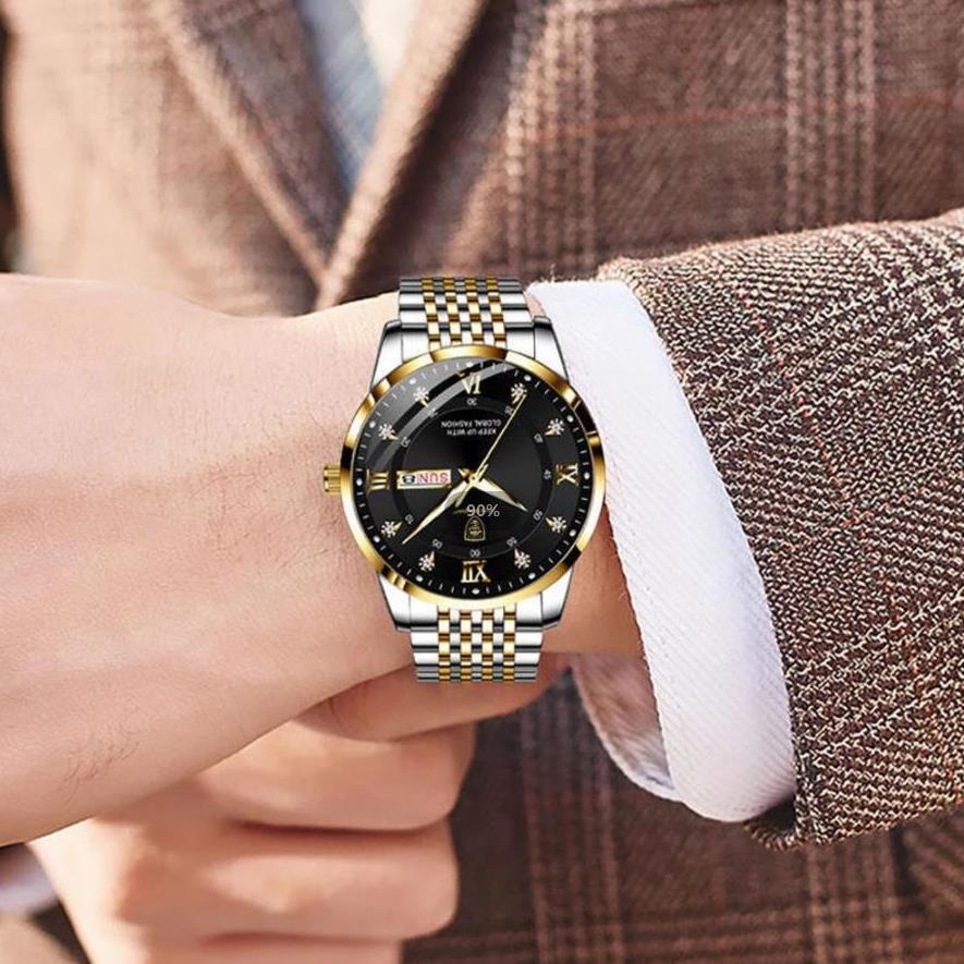 POEDAGAR Mens Fashion Full Steel Quartz Watch